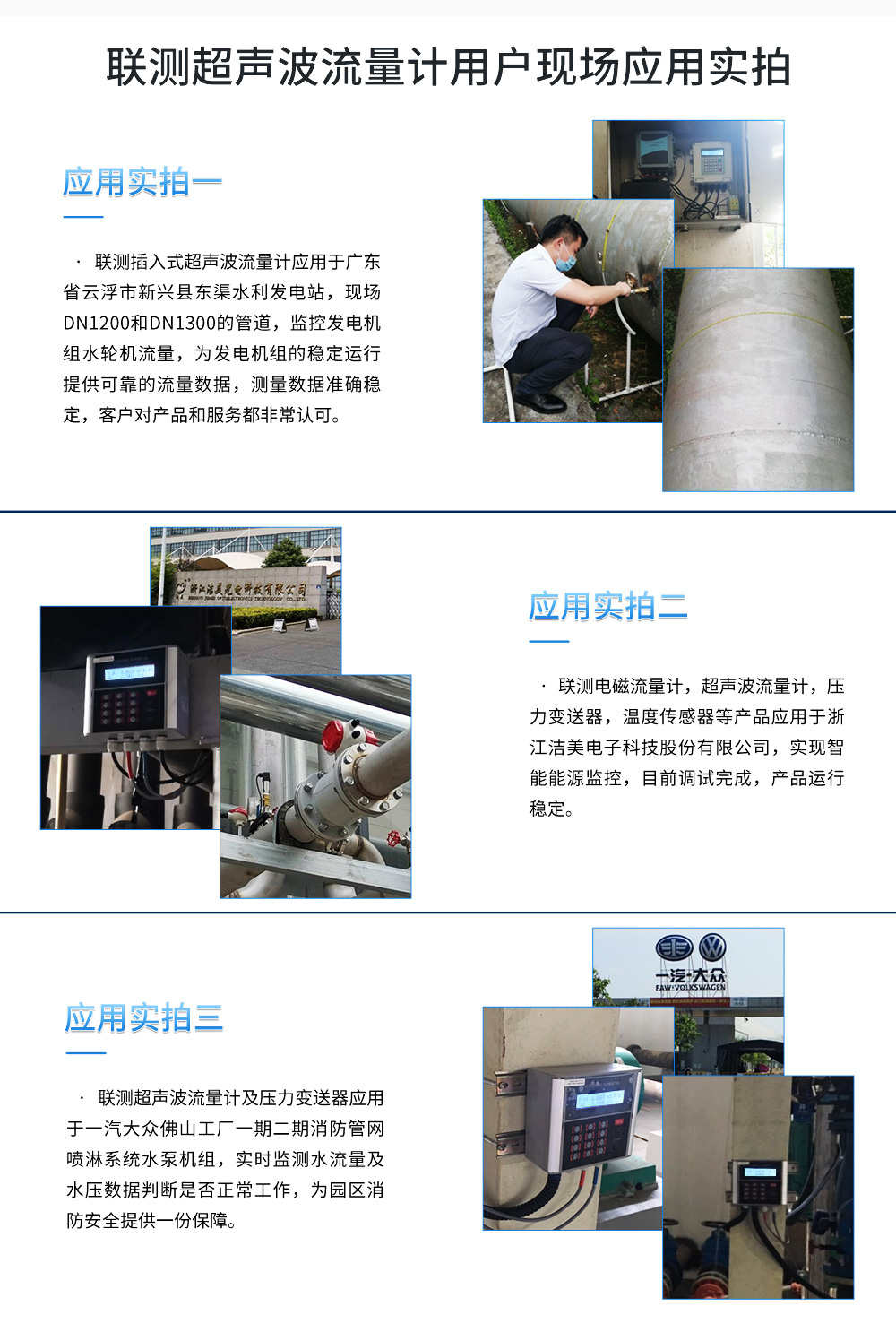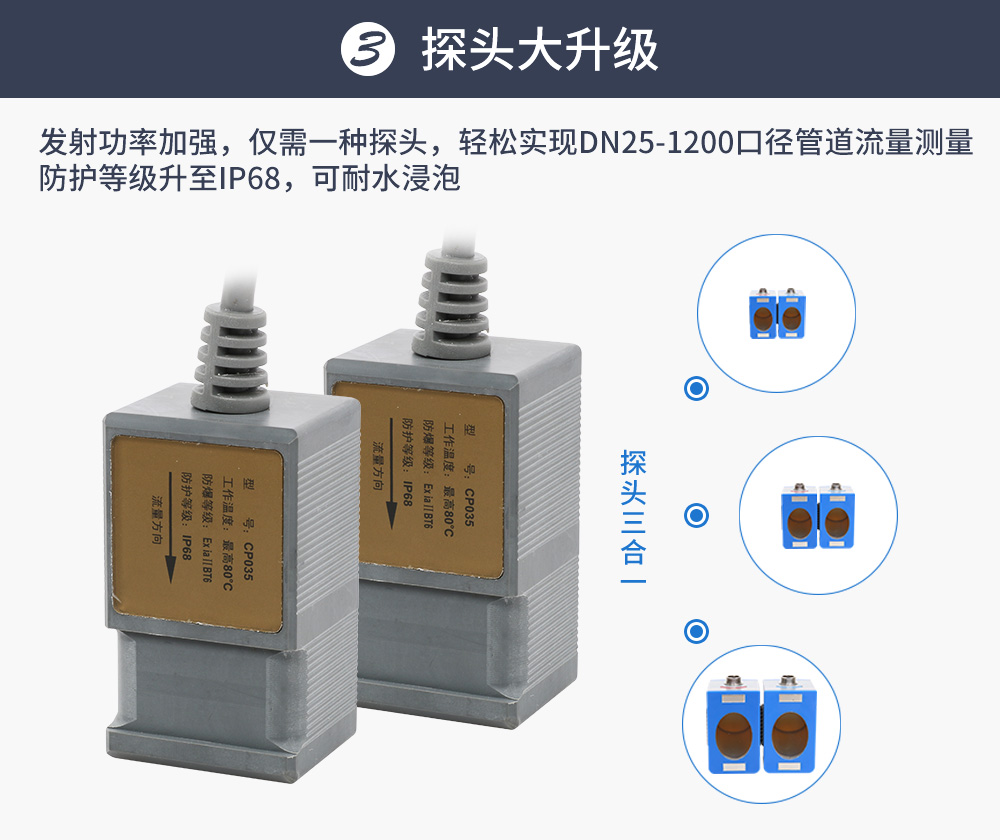 測超聲波流量計適合相對純凈液體流量的管外測量,尤其是在水流量測量、在工業循環水、空調制冷循環水、原水、高壓水、自來水,污水排放管等廣泛應用。