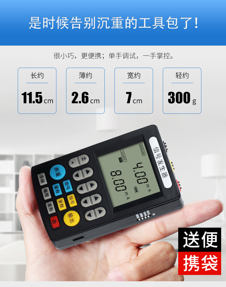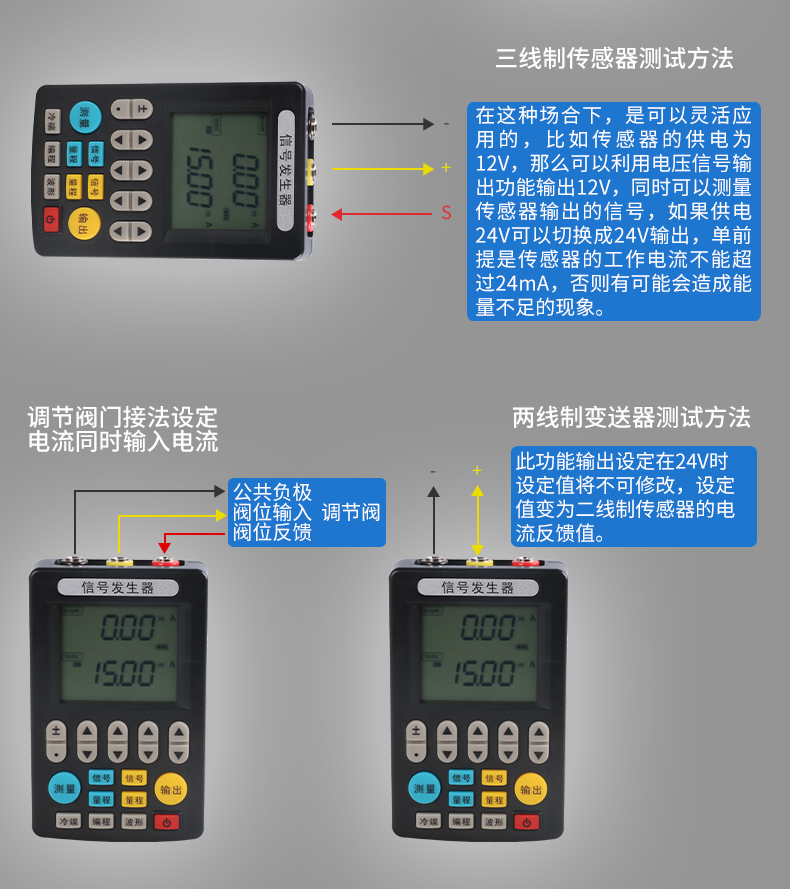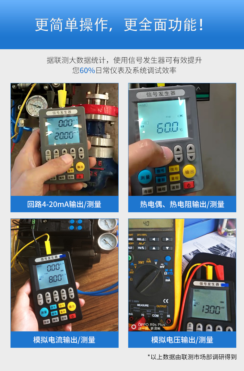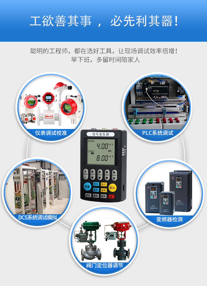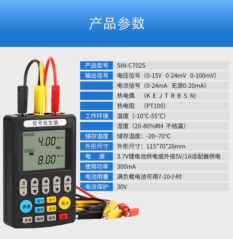 信號發(fā)生器具有多種信號的測量和輸出功能,包括電壓、電流、熱電偶,采用高清LCD液晶屏和功能分明的硅膠按鍵,操作簡單,待機(jī)時(shí)間長,精度高,并且具有可編程輸出的功能。