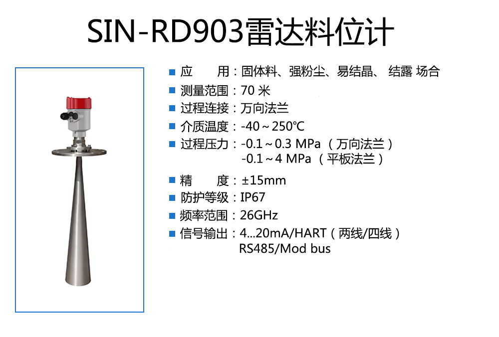90 系列傳感器是 26G 高頻雷達(dá)式物位測(cè)量?jī)x表,測(cè)量最大距離可達(dá) 80 米。