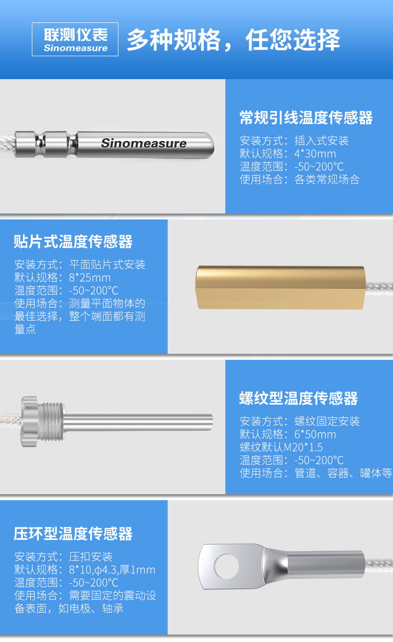聯(lián)測(cè)溫度傳感器可以直接測(cè)量各種生產(chǎn)過(guò)程中液體,蒸汽和氣體介質(zhì)以及固體表面的溫度,通常和顯示儀表、記錄儀表等配套使用。