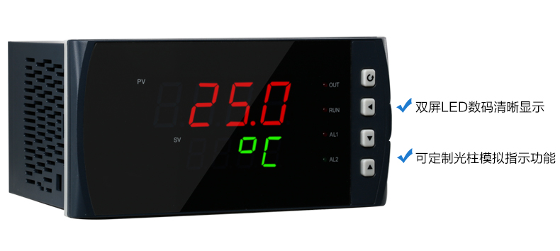 SIN-2100單回路數(shù)字顯示控制儀采用全自動(dòng)貼片封裝工藝,具有很強(qiáng)的抗干擾能力。設(shè)計(jì)了雙屏 LED 數(shù)碼顯示,顯示內(nèi)容更豐富。