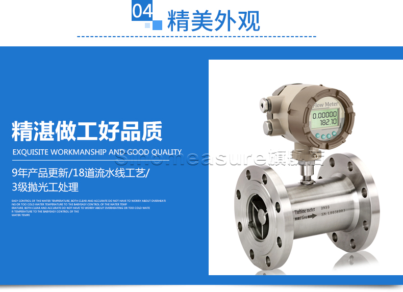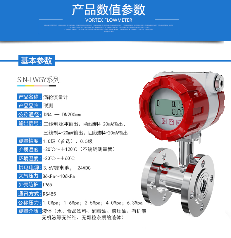 流體流經(jīng)傳感器殼體,由于葉輪的葉片與流向有一定的角度,流體的沖力使葉片具有轉(zhuǎn)動(dòng)力矩,克服摩擦力矩和流體阻力之后葉片旋轉(zhuǎn),在力矩平衡后轉(zhuǎn)速穩(wěn)定,在一定的條件下,轉(zhuǎn)速與流速成正比,由于葉片有導(dǎo)磁性,它處于信號(hào)檢測(cè)器(由永久磁鋼和線圈組成)的磁場(chǎng)中,旋轉(zhuǎn)的葉片切割磁力線,周期性的改變著線圈的磁通量,從而使線圈兩端感應(yīng)出電脈沖信號(hào),此信號(hào)經(jīng)過放大器的放大整形,形成有一定幅度的連續(xù)的矩形脈沖波,可遠(yuǎn)傳至顯示儀表,顯示出流體的瞬時(shí)流量或總量。