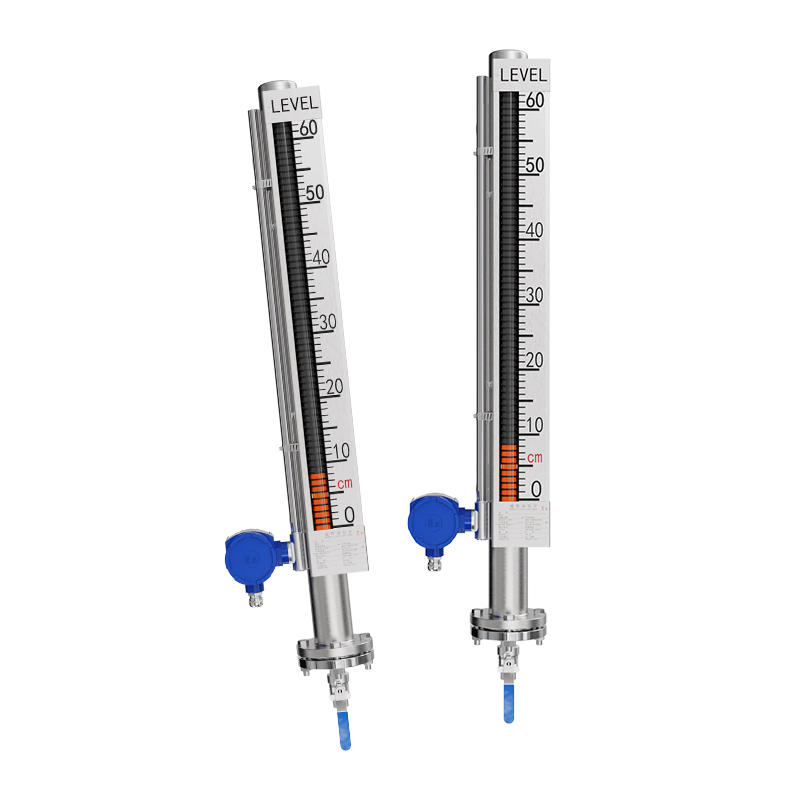 液位變送器由傳感器和電流轉(zhuǎn)換器兩部分組成,其傳感器部分安裝 在液位計指示器內(nèi)(內(nèi)置式)或不銹鋼保護管內(nèi)(捆綁式),使其與磁 性液位計處于同一磁耦系統(tǒng)中,當液位上下波動變化時,其磁性浮子傳 感器內(nèi)的干簧電阻矩陣中的干簧管,不斷地吸合或釋放,從而導(dǎo)致傳感 器矩陣的輸出電阻值發(fā)生變化,其變化的阻值與液位的變化值成對應(yīng)的 線性關(guān)系,也就是液位的變化轉(zhuǎn)換成電阻的變化,并通過電流轉(zhuǎn)換模塊 將電阻變化轉(zhuǎn)換成 4~20mA 電流變化。